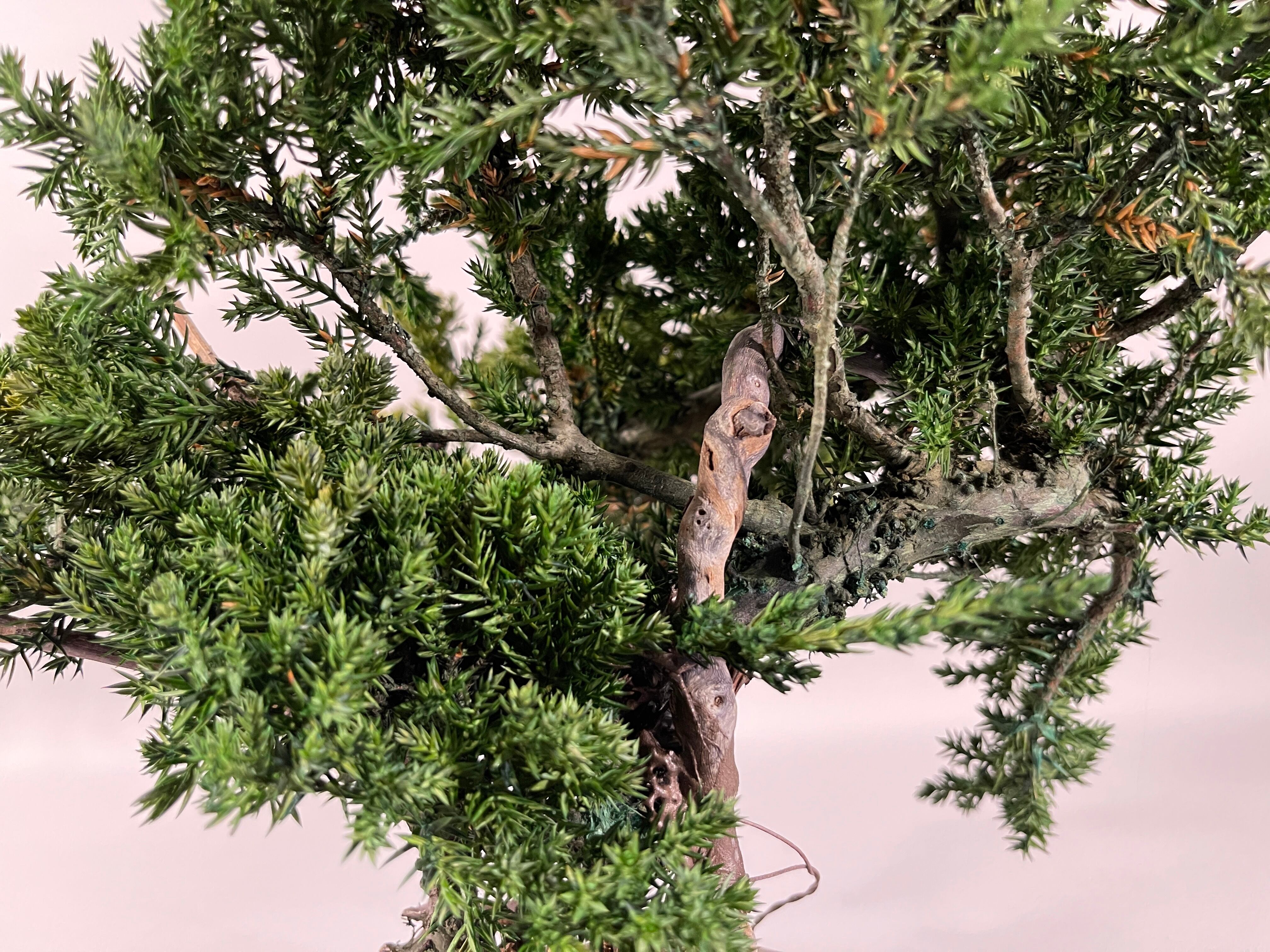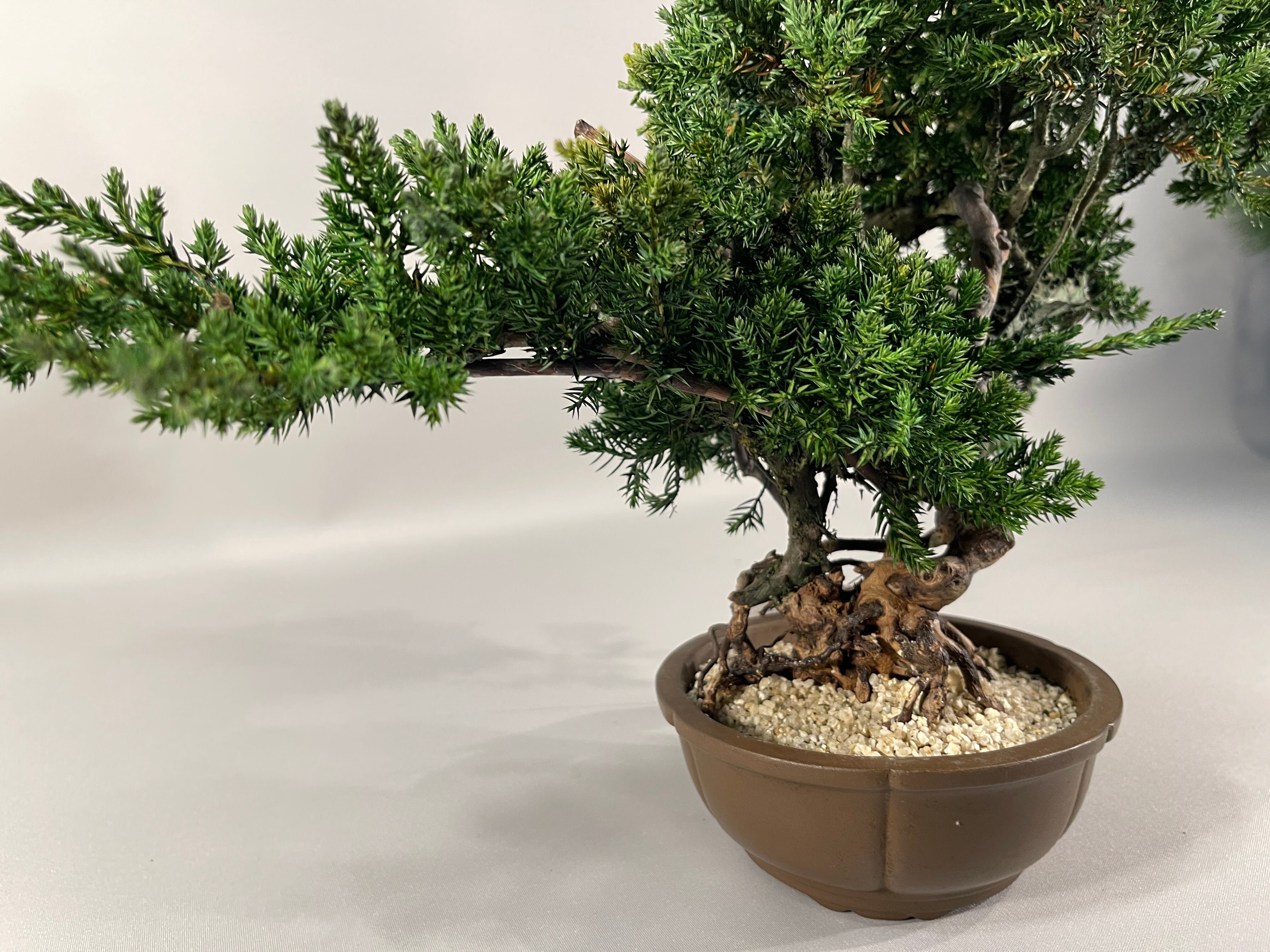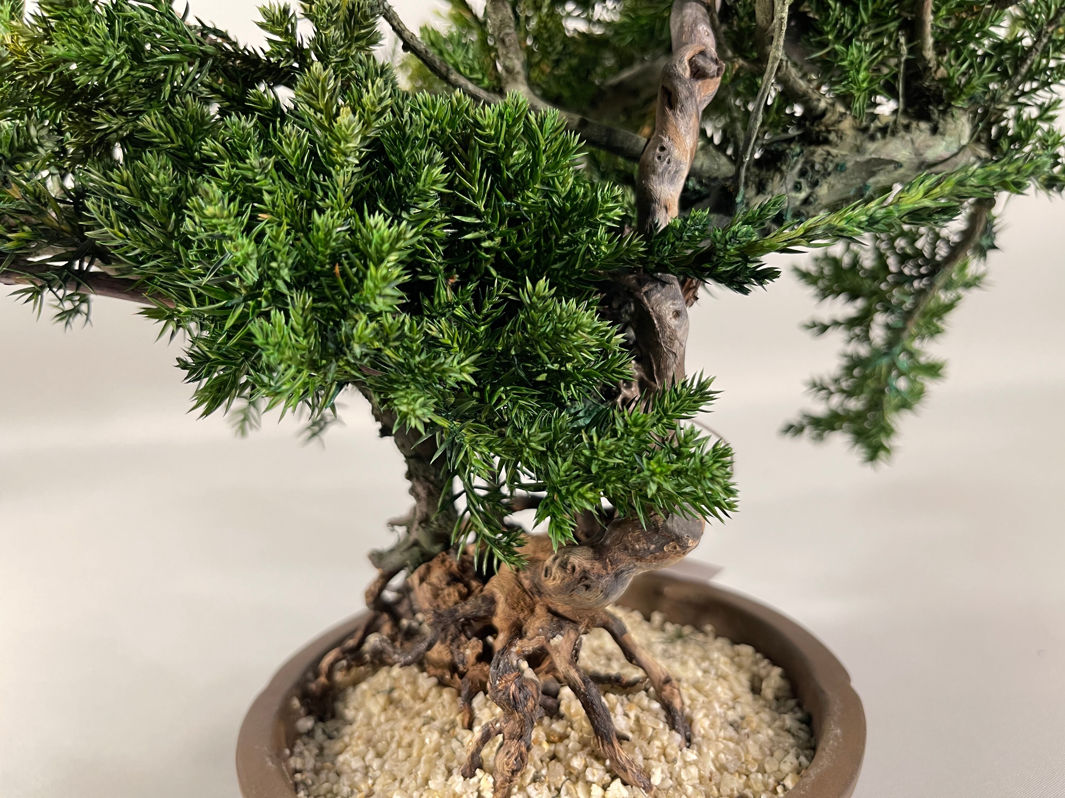 【作品解説】 たゆまぬ生命の輝きを、そのままの姿で。 本作品は、自然の力強さを象徴する「根連なり」の古木をベースに、緻密な葉密度を誇る「プロカンベンスナナ」を贅沢に配した、気品漂う一鉢です。