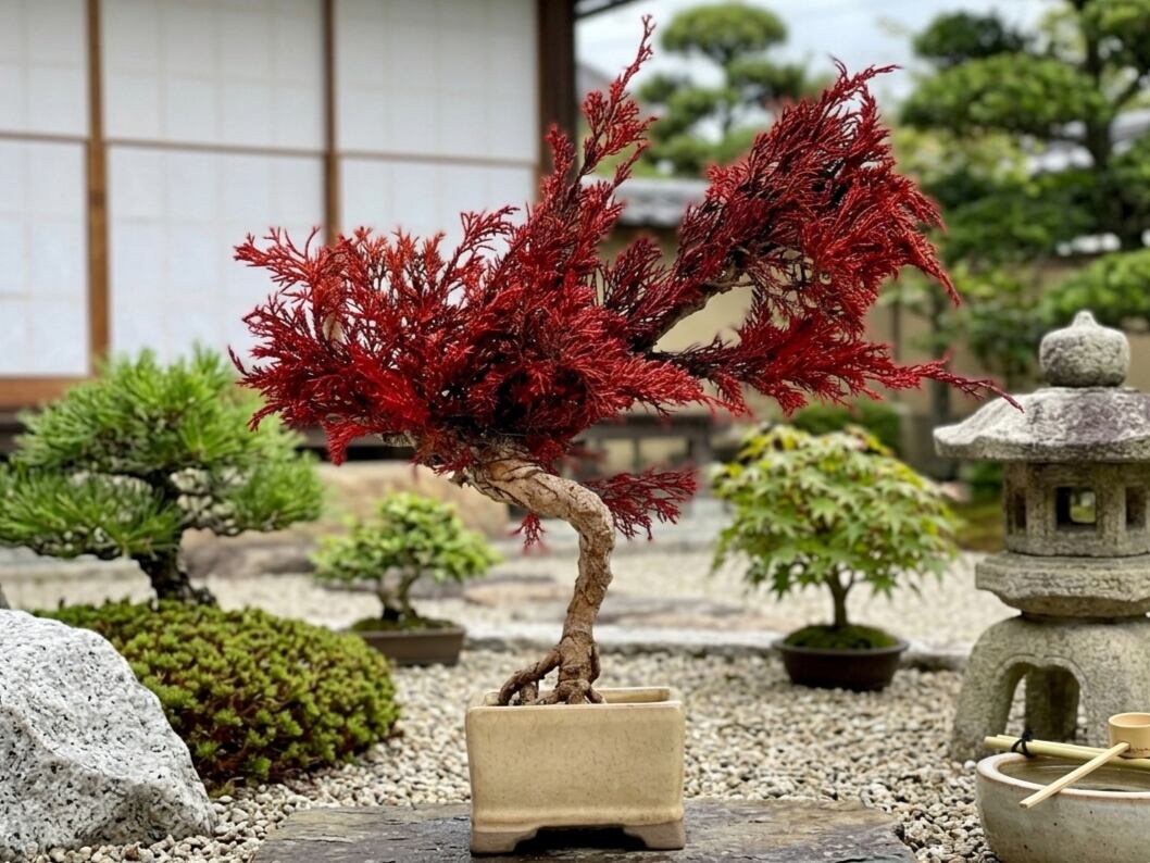 長い年月を生き抜き、熟練の技術によって形作られた素晴らしい佇まいの盆栽。そこには膨大な時間と労力が注がれています。